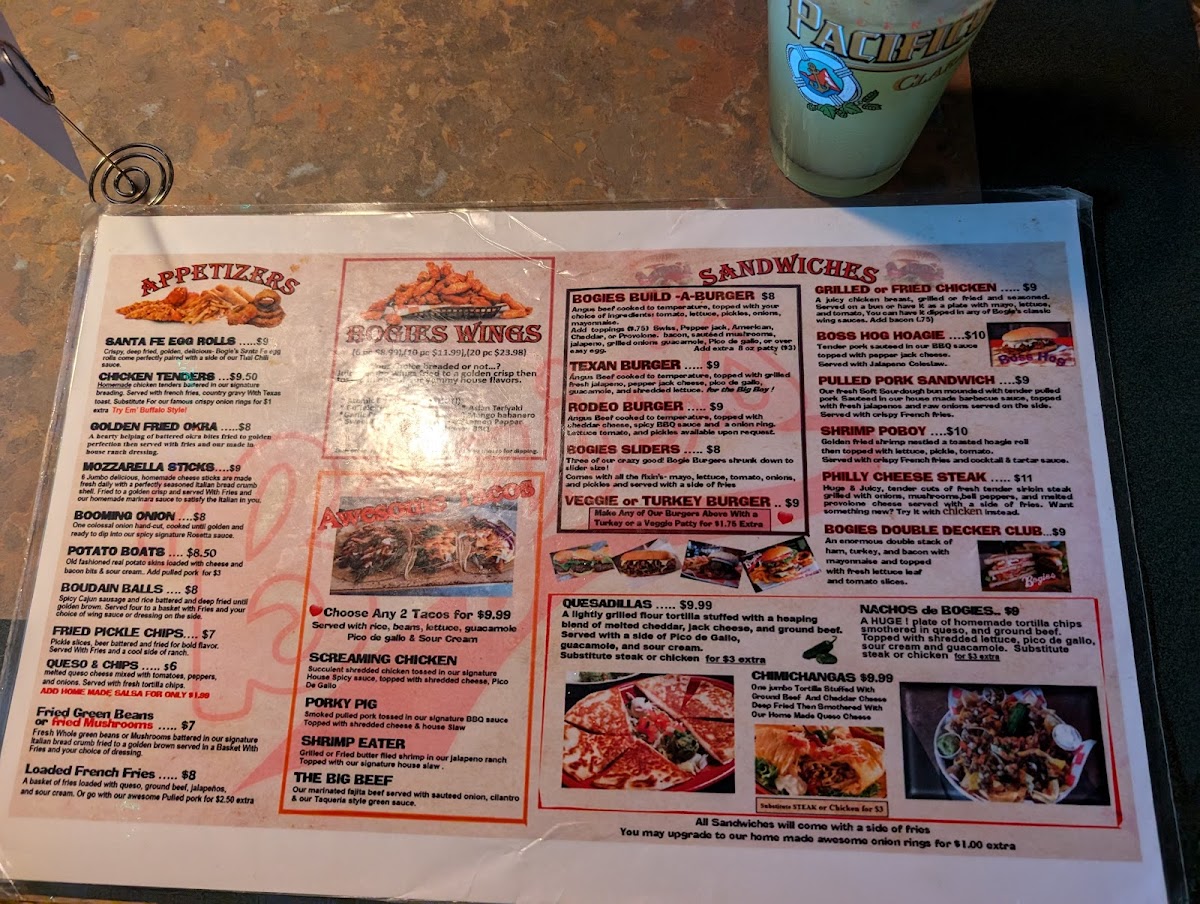Welcome to Bogie's Pub & Grill, a culinary haven located at 2803 Dulles Ave, Missouri City, TX. This inviting pub is known for its flavorsome menu that includes a variety of sandwiches, burgers, and delightful appetizers. The standout item, the Bogies BuildABurger, is a must-try at just US$8.00. For burger aficionados, the Texan Burger and Rodeo Burger are crowd favorites, both priced at US$9.00.